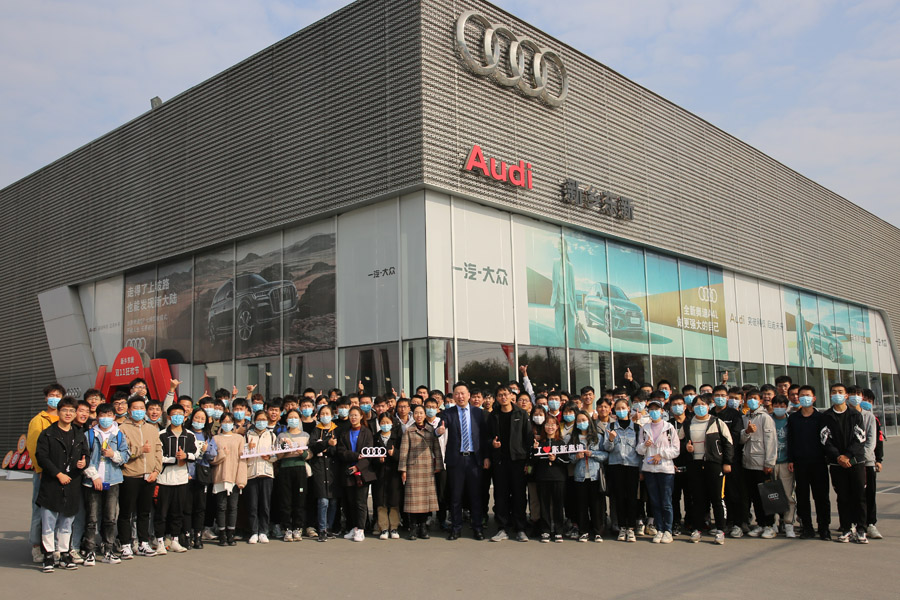 中午11點(diǎn)鐘,同學(xué)們來到東新奧迪4S店進(jìn)行參觀學(xué)習(xí),銷售總監(jiān)蔣振勝給廣大同學(xué)們講解了奧迪的各款車型、服務(wù)接待流程、售后接待流程,又帶領(lǐng)大家進(jìn)入售后保養(yǎng)車間進(jìn)行參觀學(xué)習(xí),參觀學(xué)習(xí)期間同學(xué)們對奧迪的服務(wù)和售后贊嘆不已,并表示今天收獲很多,更加堅信了學(xué)習(xí)的興趣和動力。