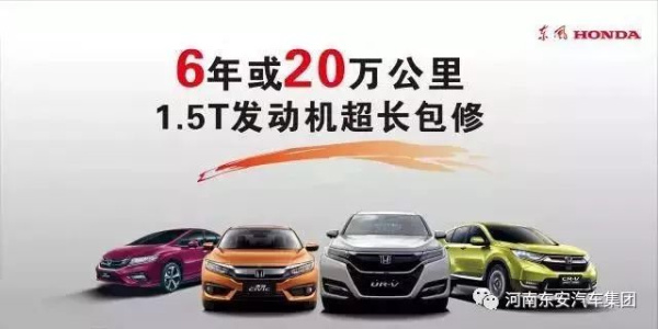 活動期間車型1.5T車型:CR-V UR-V 思域 杰德 (6年/20萬公里發(fā)動機(jī)包修)