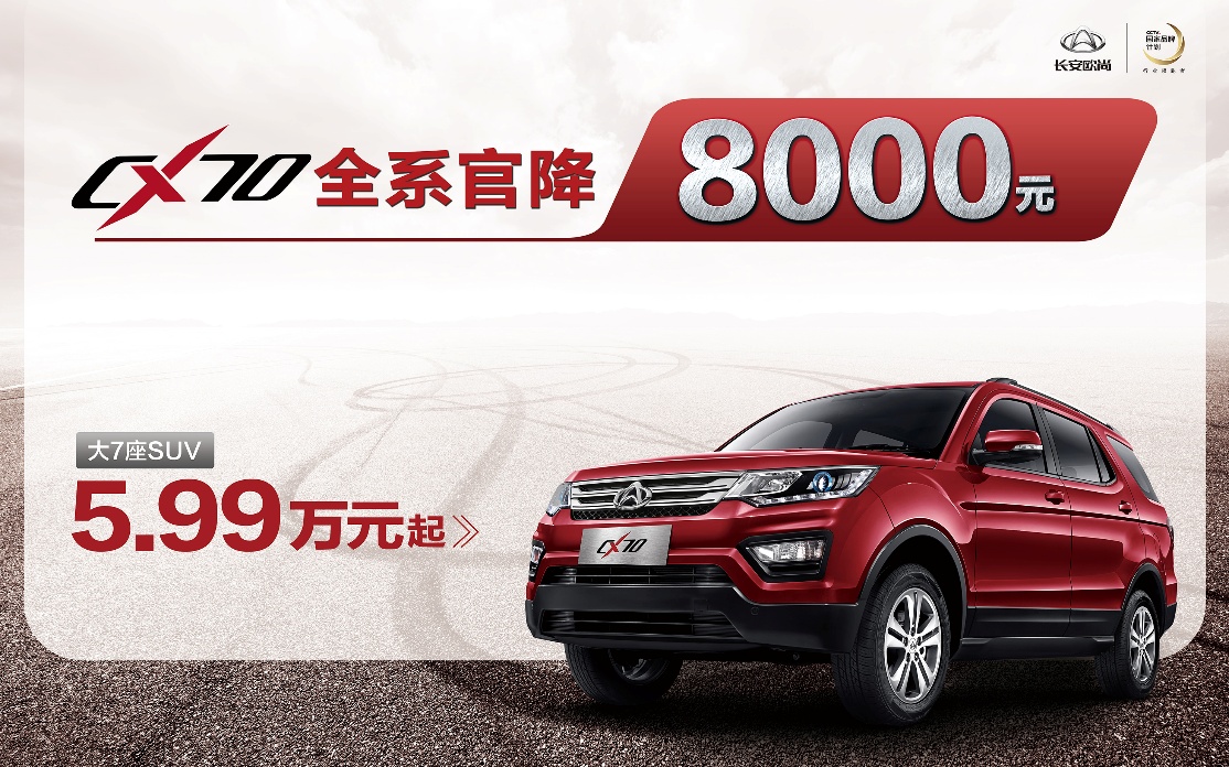 長安歐尚官方公布,即日起長安CX70全系車型官方售價大幅下調(diào),降幅高達10000元!優(yōu)惠力度大。