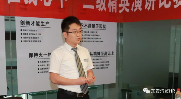 鄭州東錦店的銷售經(jīng)理邵明芳,圍繞汽車銷售分別從預算、廠家指標等方面進行了演講,他的演講條理清晰、切合實際,得到了評委們的一致肯定;新鄭寶馬店的電銷顧問鄭新蕾,演講風格清新、形式新穎,不時與臺下評委互動,調(diào)動了整場比賽的氛圍。在這些選手當中,絕大多數(shù)對于本次比賽高度重視。例如新鄉(xiāng)哈弗店的售后經(jīng)理李東亮,為了不影響白天的正常工作和晚上家人的休息,專門在賽前把自己關(guān)到賓館,伏案準備到天亮,第二天正常到公司上班,一連三四天獨自一人在賓館反復背誦練習。他對工作的熱情和執(zhí)著地體現(xiàn)在了新鄉(xiāng)站的比賽當中。由于準備充分,李經(jīng)理現(xiàn)場演講效果佳,內(nèi)容深刻,而且感染力強,一舉贏得了當場比賽的高。